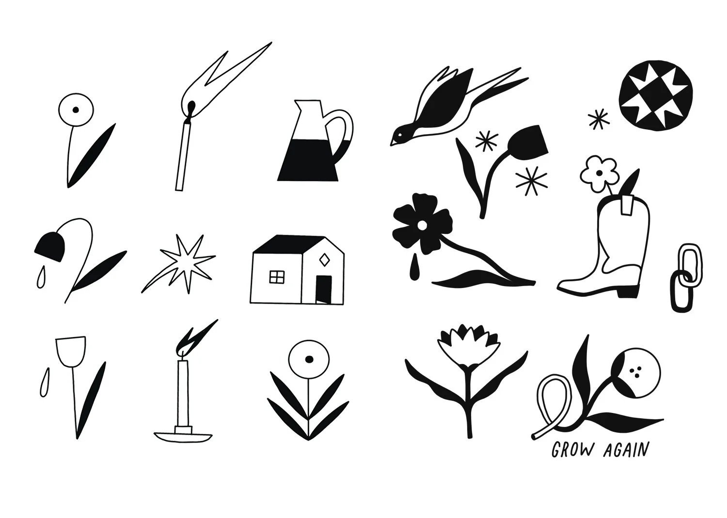 Tattoos I’ve hand-poked with care. Along with a series of flash illustrations.